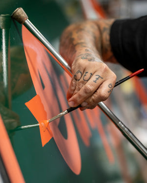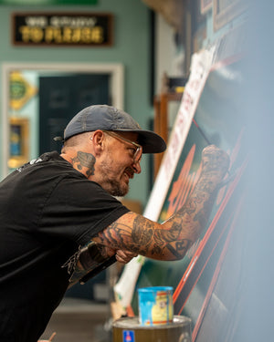 I kind of started painting signs by accident honestly. I had been tattooing full time for about 8 years, and saw some signs a painter had made for another shop via instagram, and decided I wanted to try and learn how to do that in my downtime. I came from a bit of a graffiti background as well as working as a graphic designer for a couple years, so it seemed like it wouldn’t be too tough. I was totally wrong and it was real hard for a while, until it wasn’t haha.