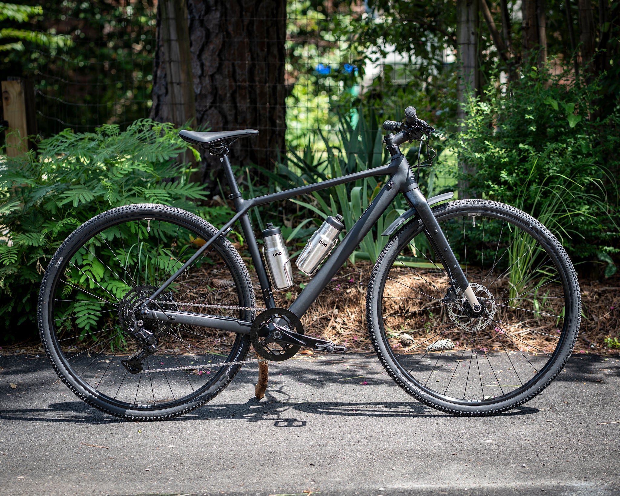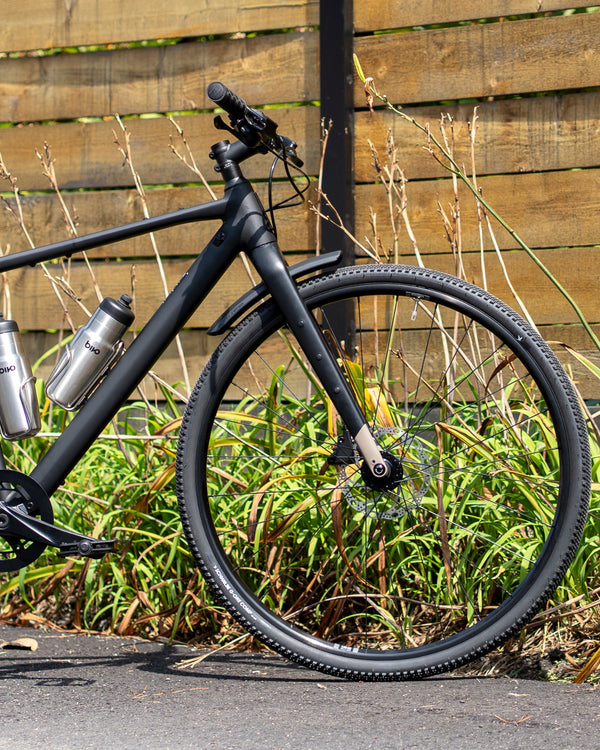 If drops aren't your thing but you want the freedom of gravel riding, Search A Flat Bar is ready for your next adventure with modern gravel geo, a lightweight aluminum frame, carbon fork with adventure mounts, Shimano CUES 1x9 drivetrain, tire clearance up to 50c, and full-coverage fender, toptube bag, and water bottle mounts.